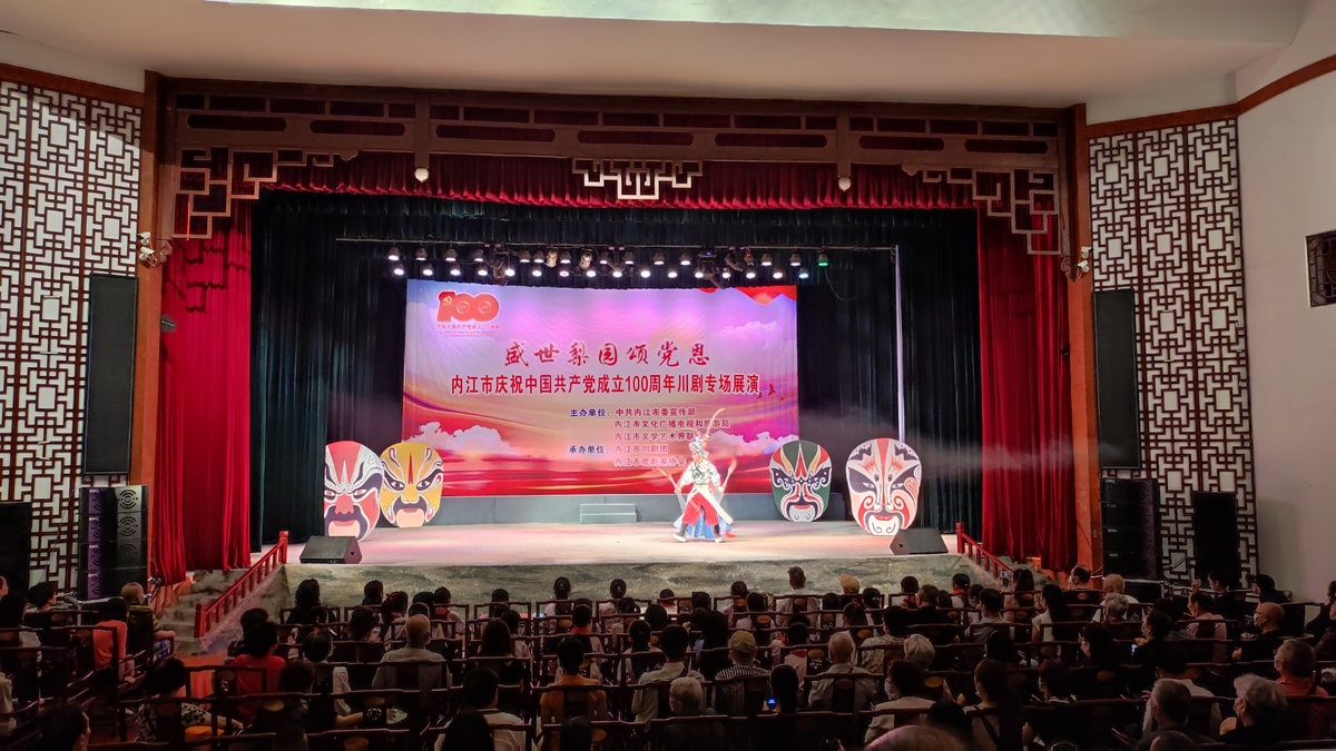 6月1日下午,内江市庆祝中国共产党成立100周年川剧专场展演,在内江市川剧团剧场举行。折子戏《思凡》、《人间好》、《归舟》,川剧《下太行》《军民鱼水情》《我们是工农子弟兵》等16个节目精彩上演,引得现场阵阵喝彩。