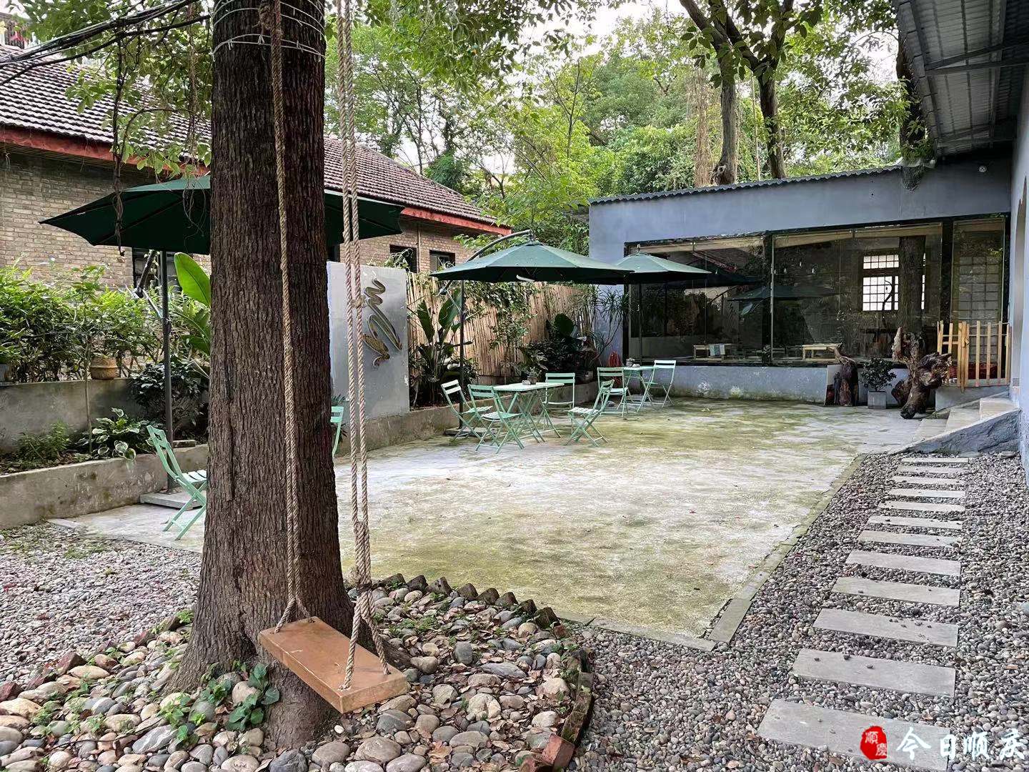 走进巷子,道路两旁是红砖砌成的围墙、鹅卵石铺就的地面,这里聚集了几户商家,不约而同的彰显出文艺范、清新风。佐伊映画、秘密花园、听风、舆人小院,光听这些商家的名字,让人就想“慢下来”。记者走进一处名为“秘密花园”的小院,一条狭长的小道伴随着整片绿色映入眼帘,在一片“森林”中,几把遮阳伞撑起几方小桌,下午茶、剧本杀、花艺植物、私人空间都是这里的元素,躺在藤椅上,喝上一口茶,看庭前花开花落,望天边云卷云舒,不甚惬意。