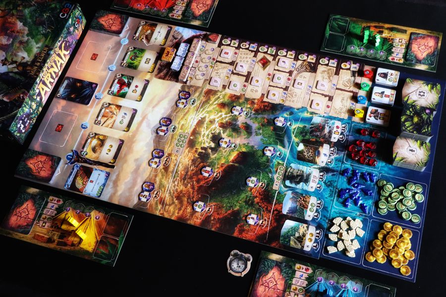 《Lost Ruins of Arnak》是一款最近在BGG上排名攀升颇快的游戏,玩家在游戏里需要扮演探险家去发现伟大文明的遗迹,寻回失落的文物,面对强大的守护者,最终发现岛上隐藏的秘密。