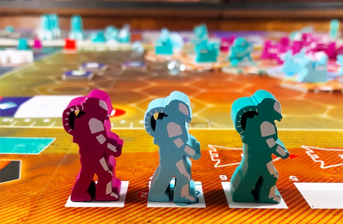 游戏的背景故事发生在2037年的火星上,第一批人类定居者抵达火星,在这片陌生的星球上开荒并非易事。为配合游戏主题,颜欧图的画风也充满科幻未来感,线条简约,UI精炼,配色鲜艳大胆,token除了充满朴素的德式风味外,还有给人以地外求生感。总之画风为游戏提供的代入感更上了一层楼。