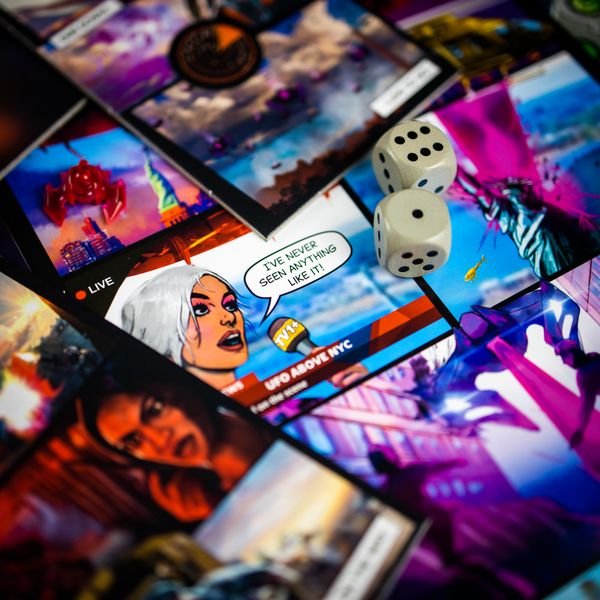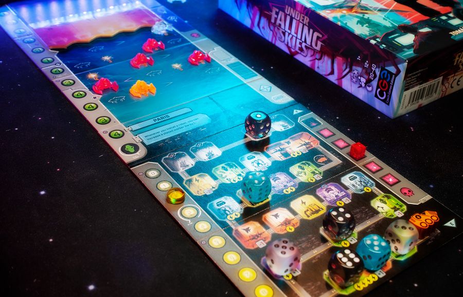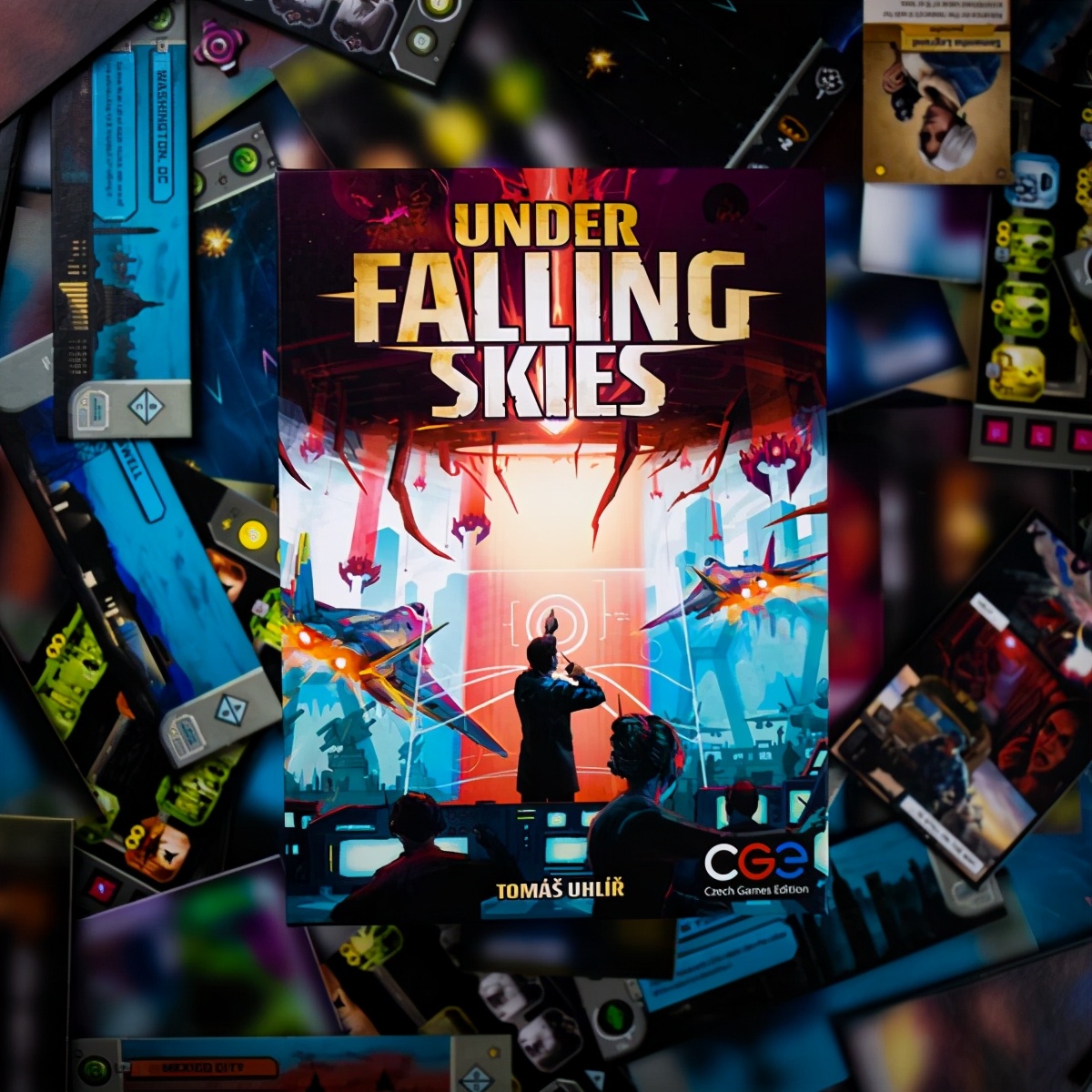 《Under Falling Skies》是一款赢得了2019年九卡设计比赛(就是用九张卡和少量配件设计一款桌游)的游戏,它作为优胜者在2020年被正式出版。