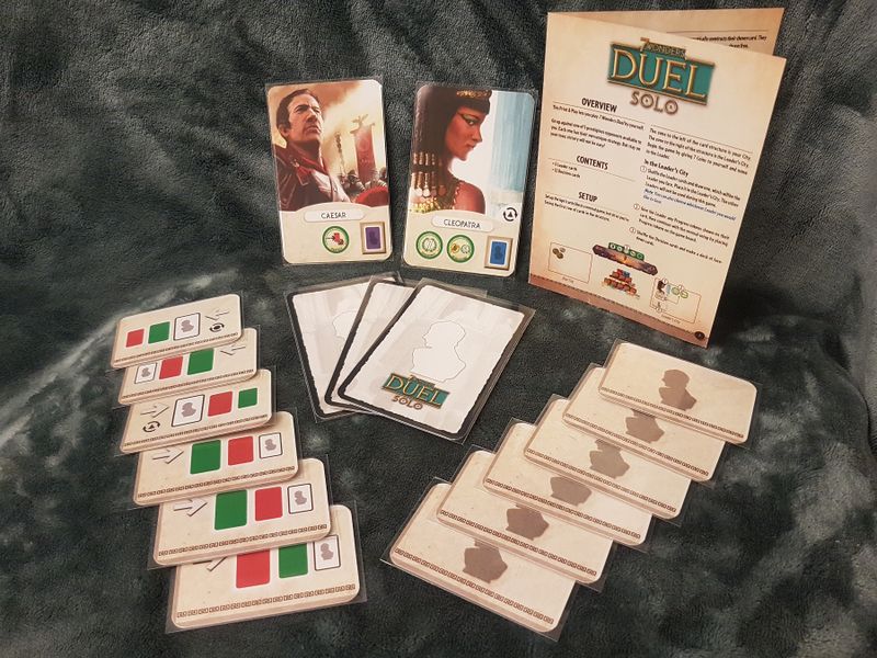 《7 Wonders Duel:Solo》也是《七大奇迹对决》为应对凶猛的疫情而推出的额外模组,允许玩家在独自一人的时候玩这个双人游戏。具体做法就是创造一个虚拟玩家,每轮会根据卡牌来进行行动,具体的决策卡会指示选择的优先级。