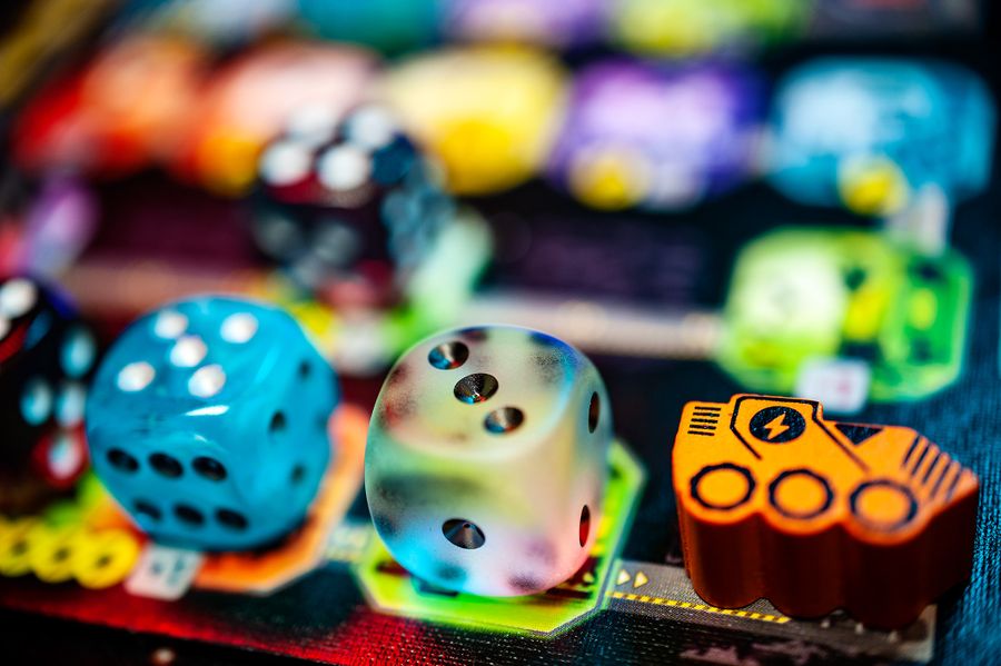 游戏版图总共由五列构成,无论敌我双方都是如此,每一列的行动格在每一轮都必须有且只有一个骰子。