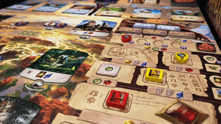 这是一个以牌堆构筑为驱动机制的工人放置游戏,在机制构成上和最佳卡牌游戏《沙丘:帝国》十分接近。游戏中的工放位有远近之分,对应了与探险者营地之间的距离。玩家要利用卡牌左上角的交通工具,让自己的探险者前往对应位置。除此以外,玩家也可以直接使用牌面的效果执行行动,搭配相当自由。