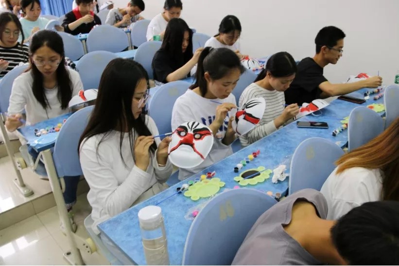 李乔松老师为中国剧协会员,国家一级演员,工川剧花脸行当,多次荣获部省级多项川剧比赛大奖,多次出国访问交流演出,出版发表了众多戏文戏作,致力于川剧花脸传承传播,他以一曲《沁园春·雪》开场,赢得了全场热烈的掌声。讲座开始,李乔松老师以幽默风趣的语言,为大家深入浅出的科普了川剧的起源和历史。他谈到我国西南地区,以四川话为语言基础,川剧便是结合四川民间音乐,用中国传统曲牌,运用写意,夸张的艺术手段,讲述的地方性中国故事。中国戏曲与诗词歌赋、国画、书法等传统文化都是一脉相传的,他倡导同学们一起保护我们中国优秀的传统文化。随后,李乔松老师在现场亲自示范教学国粹经典一一画脸谱,一笔一划细心讲解脸谱要领。同学们专注制作的同时,还向老师请教,现场气氛十分欢乐。