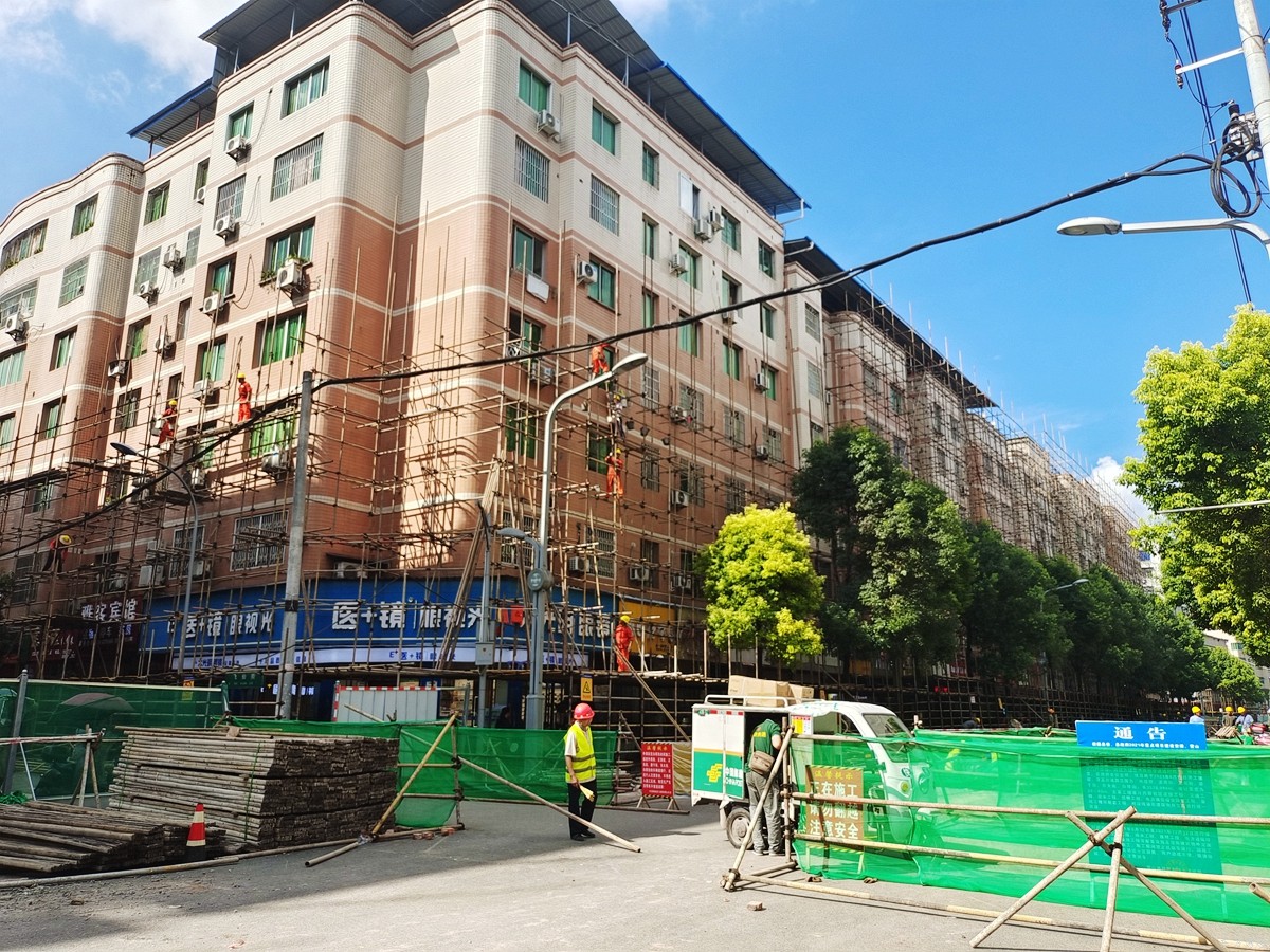 县城老街主街道风貌改造正在进行时