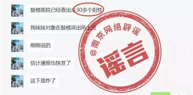 部分网民在网上散布来源不明未经核实的信息,诸如“南京禄口机场发现确诊病例,其密接者千余人中发现74例阳性患者”“新数据已逼近40人”“鼓楼医院查出30多个阳性”“已经70多(阳性)”等谣言内容,引发其他网民恐慌情绪。