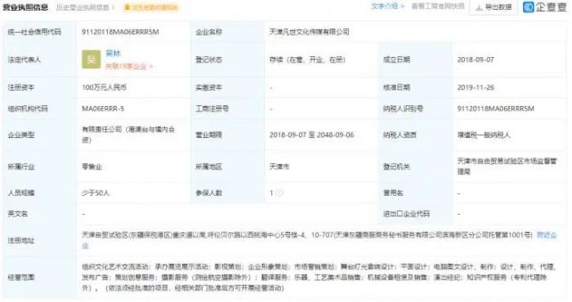 [color=rgba(0, 0, 0, 0.85098)]除了潮牌公司,吴亦凡还成立有音乐厂牌。2020年,音乐厂牌“20XXCLUB”官方微博注册,所属实体为天津凡世文化传媒有限公司,其股东为北京凡世文化,占股51%,另一个股东为香港星睿文化,占股49%。目前天津凡世文化传媒有限公司处于存续状态。