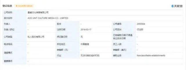[color=rgba(0, 0, 0, 0.85098)]天眼查显示,目前吴亦凡拥有实际控制权的公司仅有新沂亿禾影视文化工作室(有限合伙)一家,并且也已于2020年9月14日注销。