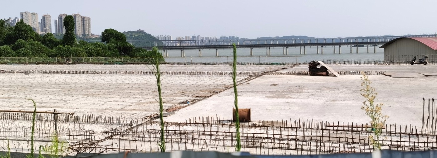 建修中的将军路大桥 正在搭建江心最后一孔桥梁 |