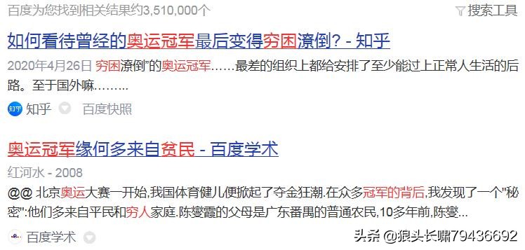 笔者被“奥运冠军背后的贫穷”震惊,于是今(7日)晨登录社交媒体网站搜索引擎,获得的结果截图如下:
