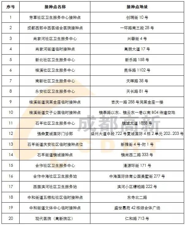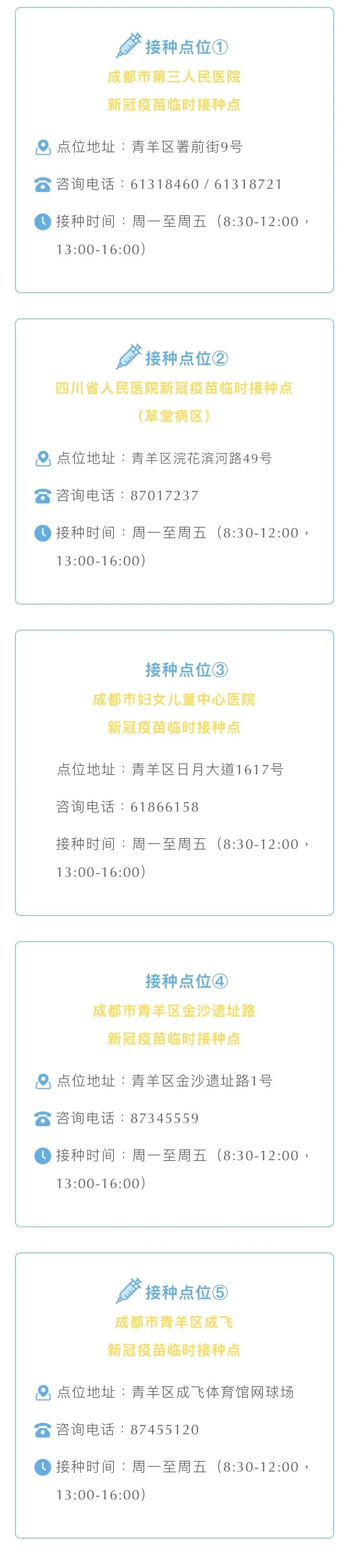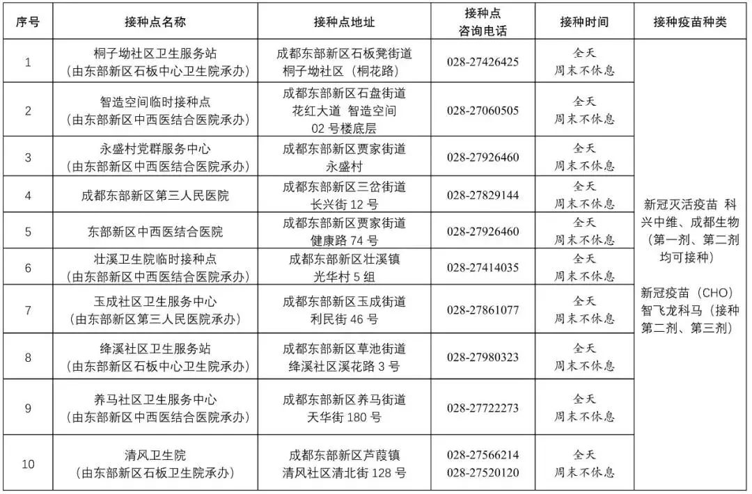 注:天府新区12-17岁非在校未成年人已可接种,每天接种点位不同,请关注“天府发布”微信公众号获取接种点位信息。