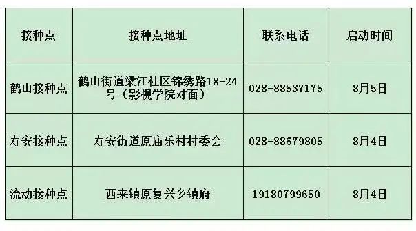 另外,成都市第三人民医院新冠疫苗临时接种点也已启动了这项服务!剩下的3个点位将于8月9日正式开始12-17岁在校学生的接种工作,家长和学生可提前电话咨询根据当天疫苗数量自行选择前往!