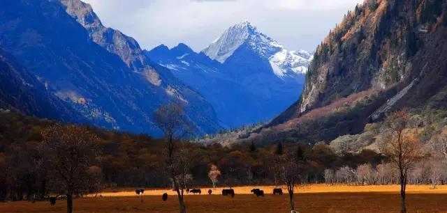 春日稻城杜鹃满山,秋日稻城红黄相间,拥有天堂般的色彩。秋已渐行渐远,时光瘦了,再怎样描绘也写不出,你姹紫嫣红的美丽。但是明媚的秋丝毫不输春日的风采,这些枯草并不凄凉和萧瑟,而是在风中摇曳着最后的颜色,从容地接受冰雪的到来,从容地等待着来年的再次勃发。与远处的山,山中的雾,河里的云,山脚的牦牛,互相掩映仿佛一幅会动的油画。