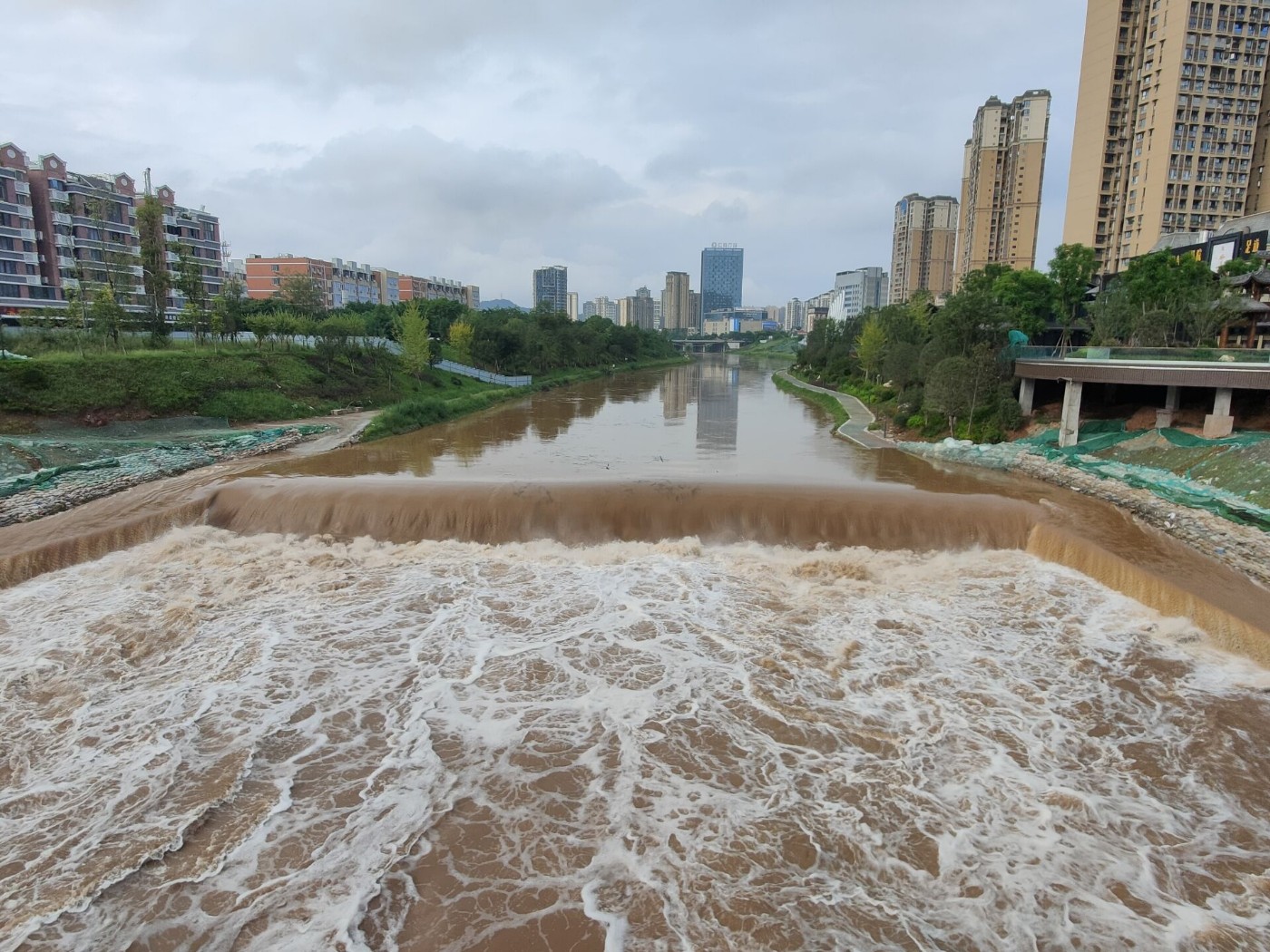 西河拦水坝今天还是挡住了大水 瀑布汹涌澎湃 |