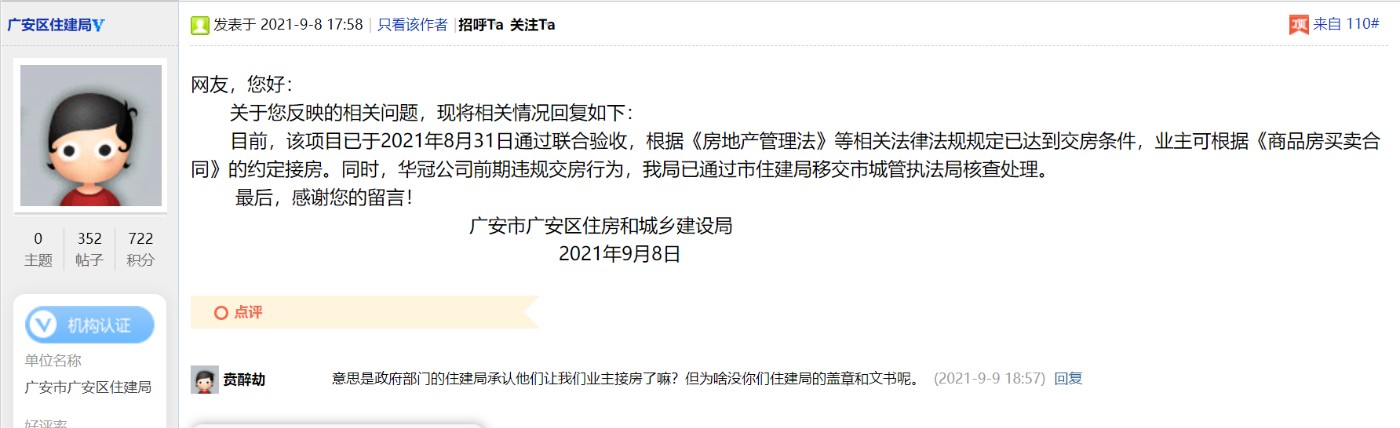 [四川群众呼声] 广安高档小区--华冠城违规交楼,政府是否是其保护伞[已回复] |