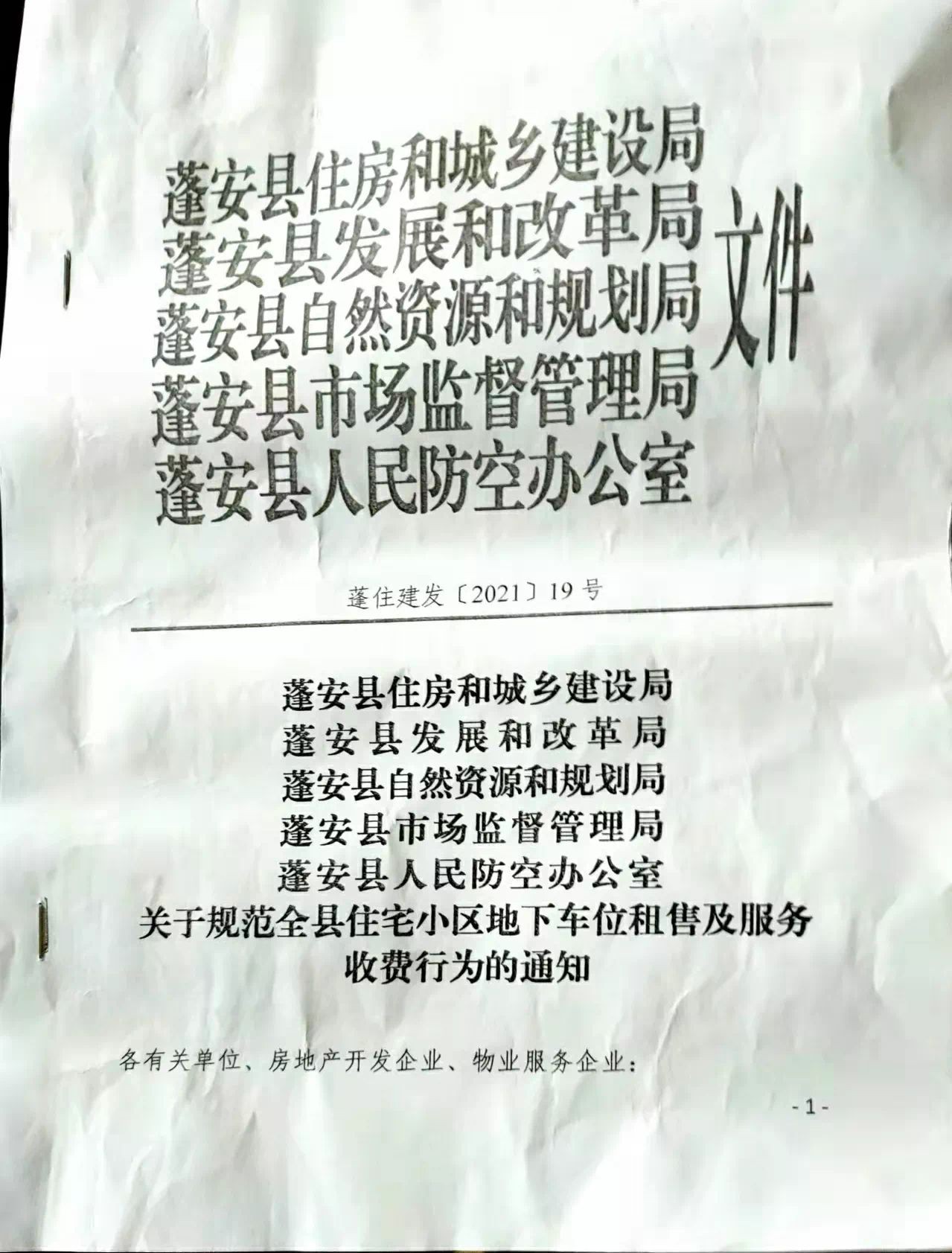 一、2021年10月18日,住建局在本论坛“蓬安金色东华小区收费停车费的问题”一文中回复:目前,我局正会同相关部门,结合我县实际情况,制定《关于规范全县住宅小区地下车位租售及服务收费行为的通知》,现在正待县委、县政府领导批准后,立即在我县全面施行小区地下车位出租、临停费及停车服务费收取的建议价格。(如图1)