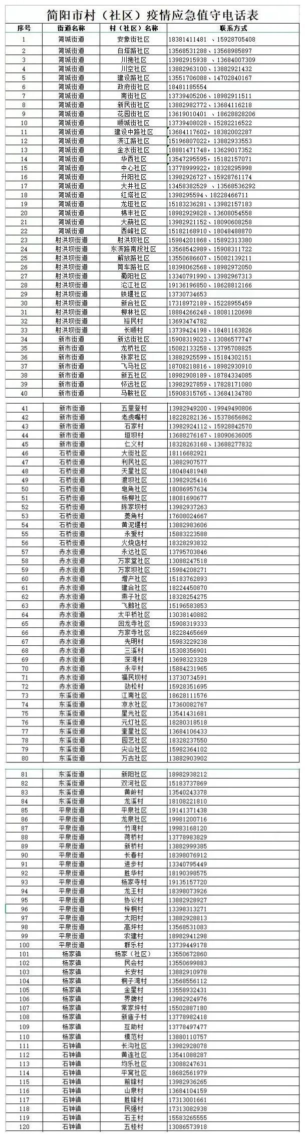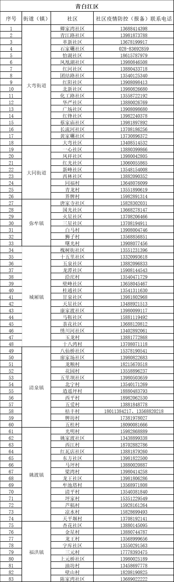 请主动报备!成都23区(市)县社区24小时应急值守电话速收藏