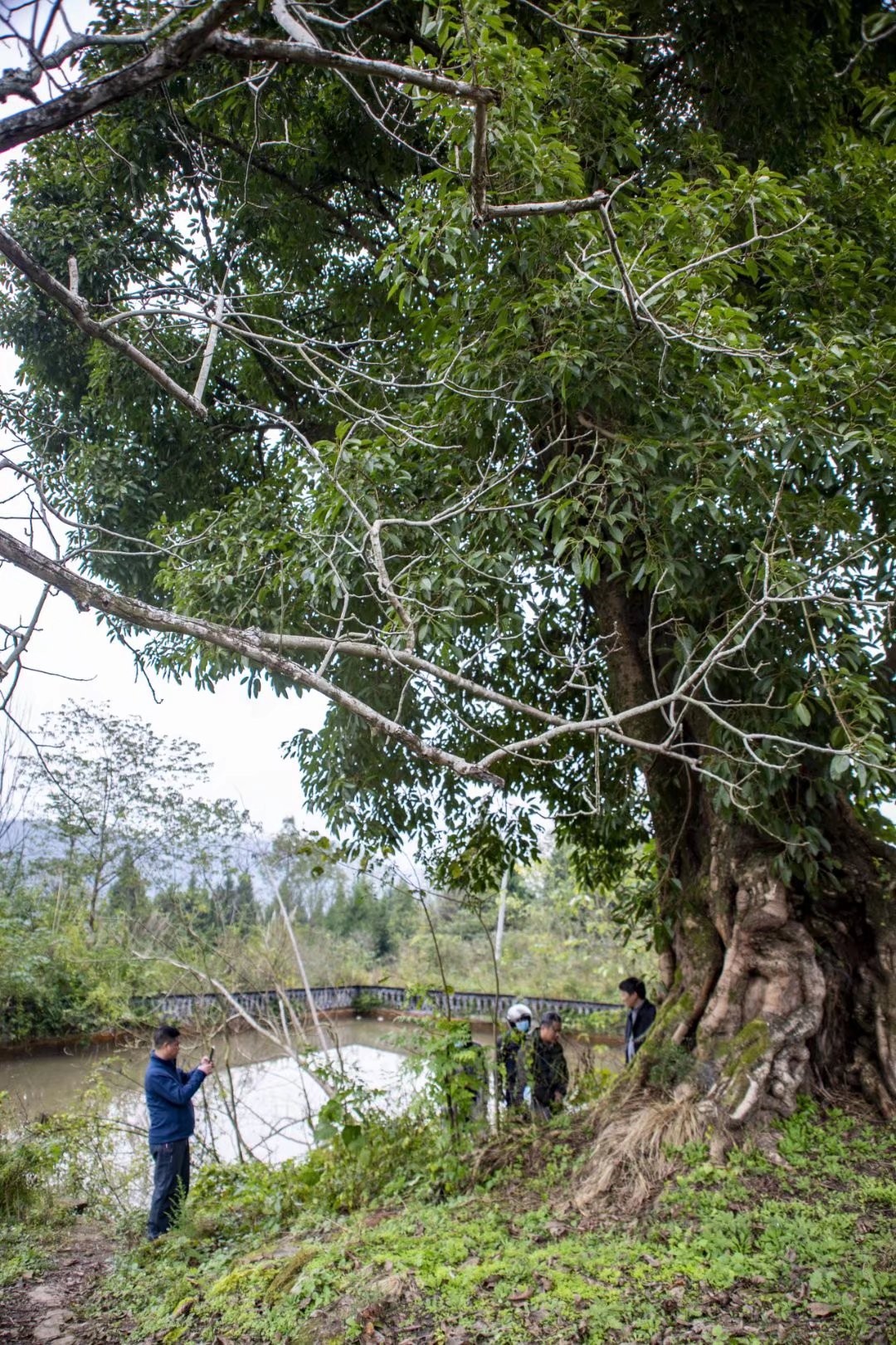 如果这种假想成立的话,那么当时在圣水泉边,也就是在现在我们所看见的这棵黄葛树旁边不远还应该有过一棵树,即使后来那棵树被毁掉了,也应该会留下树桩残根之类的。