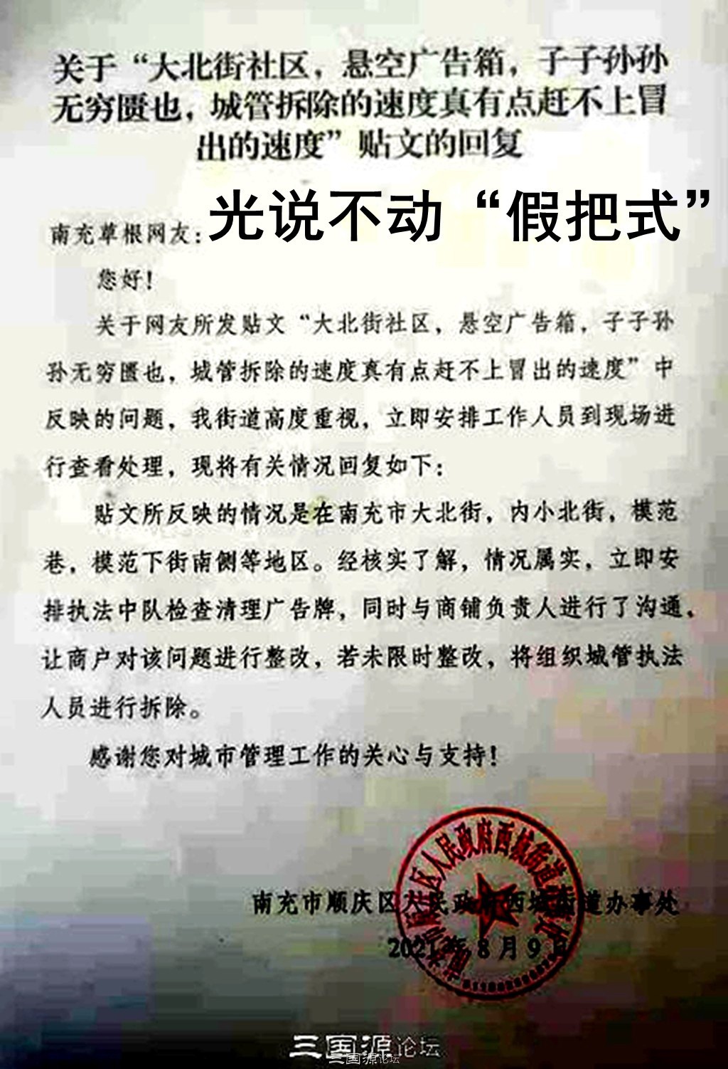 [八卦吐槽] 顺庆西城街道之脏乱差典型:180多天,10多个帖子;多次承诺,岿然不动!取信于民? |