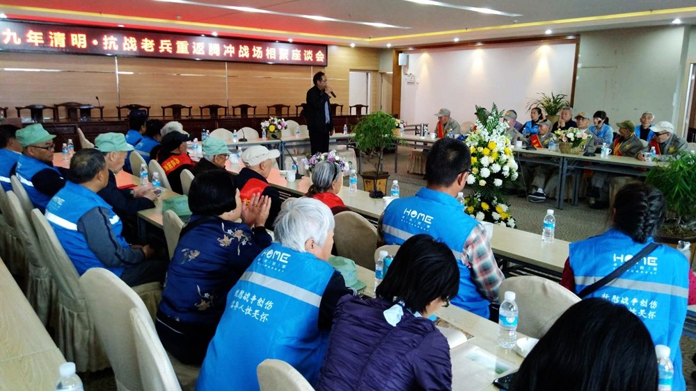 祭奠仪式上,杨晟领事、云南同乡会会长高仲品、四川普善会长蒲寒先后致辞,来自四川的吴玉章老人代表中国远征军老兵讲话。随后,全体祭祀人员逐一向抗日英烈敬献菊花并鞠躬,这时歌曲《龙的传人》再次响起。祭奠结束后,8位老兵在家属和志愿者搀扶下,走进存放347具中国远征军抗日将士遗骸的房间,默默地围绕遗骸存放架一周。临出房间时,8名老兵列队向为抗击日寇而牺牲异国、至今不能归乡的昔日战友连敬3次军礼。