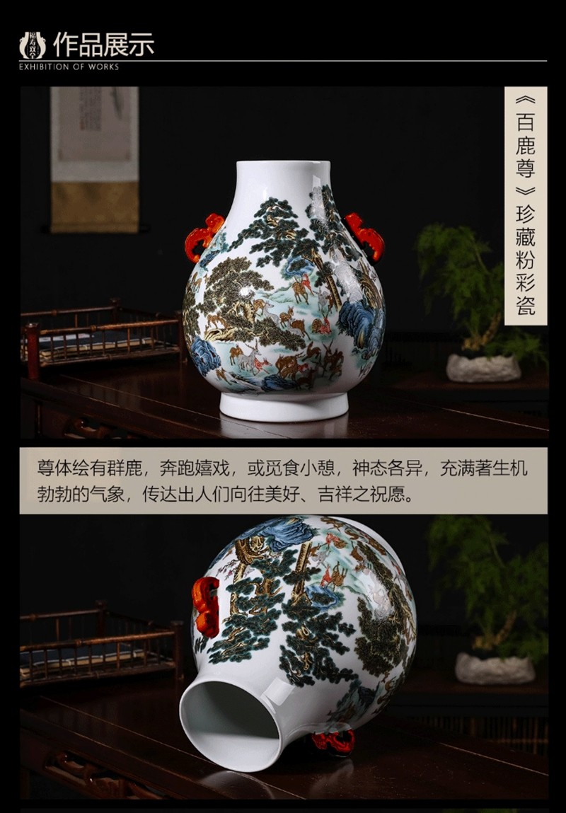 [出售] 《福寿双全》粉彩对瓶百鹿尊百鹤尊瓷瓶王怀治大师作品 |