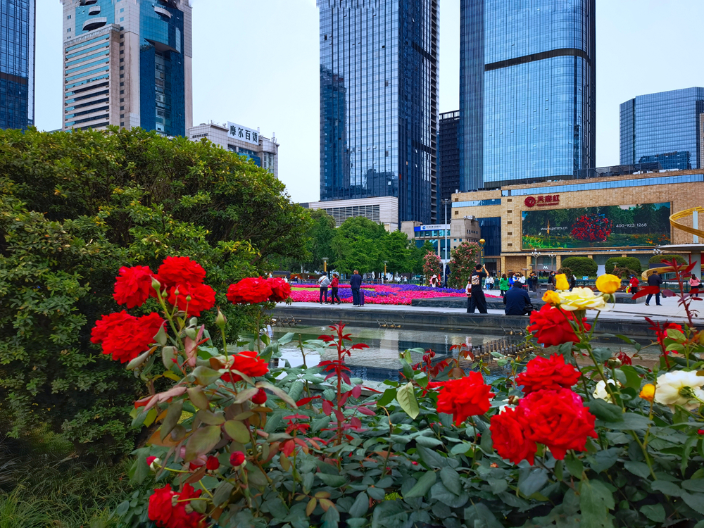 成都天府广场展新颜庆祝“五一”国际劳动节