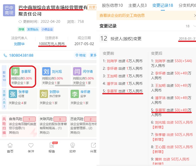 (巴州区法院发布于2012年1月19日的执行信息截图) (查询到的公开诉讼信息截图合集) (百度关键词搜索首页大量的民间借贷诉讼信息) 二、强悍!搞公司做的都是好项目 合法外衣下的伪装 涉以公肥私 相关部门怎不查查? 原物资局单位用地,位于城西市场主干道老城核心区,周围人流量巨大,历年来看上这块黄金宝地的多位投资者均铩羽而归。不知什么原因,以红福社区居委会100%持股的一家名为巴中福鑫物业管理有限公司的企业,被大开绿灯建起一家低投入高回报的大型停车场对外经营,身为该社区居委会一把手的李晏军,自然也是经理、执行董事一肩挑。表面属于居委会,实则一把手说了算,变相成了公器私用。从该公司的成立时间及经营范围上来看,这是一家专为利用该地块而设立的公司,根本不会给别人抢食的机会。铺好了一张极易滋生腐败的温床,流油的肥肉就摆在嘴边,也不睡一睡咬一咬?何以生而为人。 同时,入股综合农贸市场这样的“大生意”,李书记也绝不会错过,南坝农贸市场经营管理公司股东赫然在列。1万元的象征性入股资金撬动了大型农贸市场的管理,没有点硬本事怎么能行?结合众多的民间借贷诉讼信息,常常是什么样的人对市场管理、放贷最感兴趣呢?全国公安机关近年爆出的众多典型扫黑除恶案件,可多关注。 (巴中福鑫物业公司工商信息截图) (南坝综合农贸市场经营管理公司及变更信息) 三、愤怒!张口服务群众 大谈大讲大论政绩斐然 “两面人”作风清晰可见 是可忍孰不可忍! 通过公开信息查询得知,利用网络、媒体等平台大肆宣传其政绩,大谈服务群众,大讲英雄故事,实在有辱英雄之名,哗天下之大稽!!!