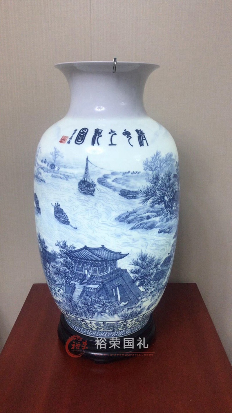 [鉴赏] 王怀俊大师国宝双绝青花瓷瓶对瓶富春山居图 清明上河图 青花瓷《国宝双绝》 |