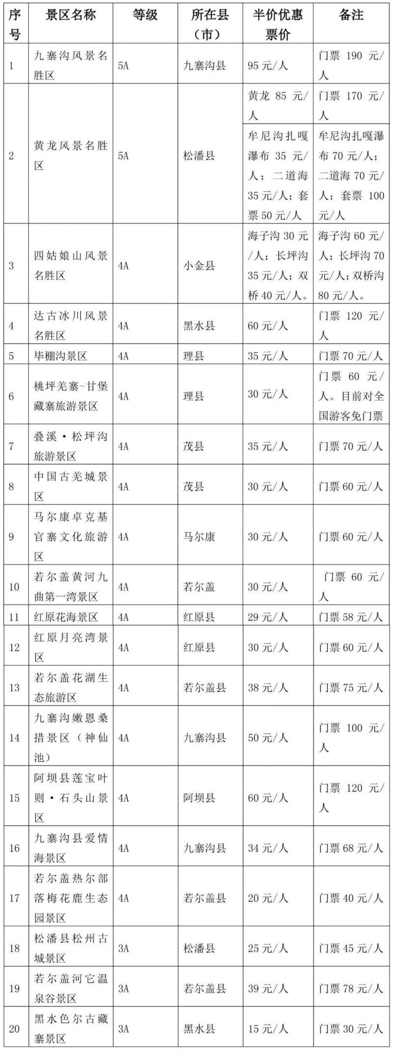 阿坝旅游网重磅!阿坝州所有A级景区半价优惠来袭! |