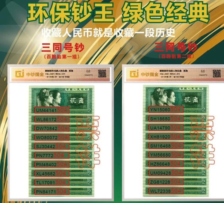 《环保钞王》百胞胎收录的100枚同号绿钞,如此稀缺难得的产品,钱币界,错版界,收藏界独占鳌头,可谓是有市无价的帝王绿!