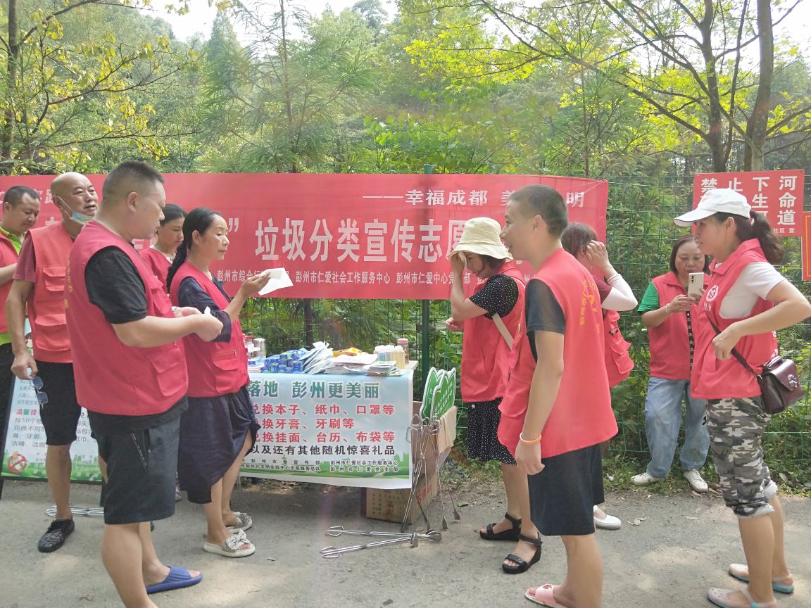 彭州市仁爱中心在7月10日,2龙门山镇龙槽沟景区开展烟头不落地、彭州更美丽“暨”垃圾分类、环保知识有奖问答志愿服务活动,倡导引领广大游人,爰护景区环境卫生生。