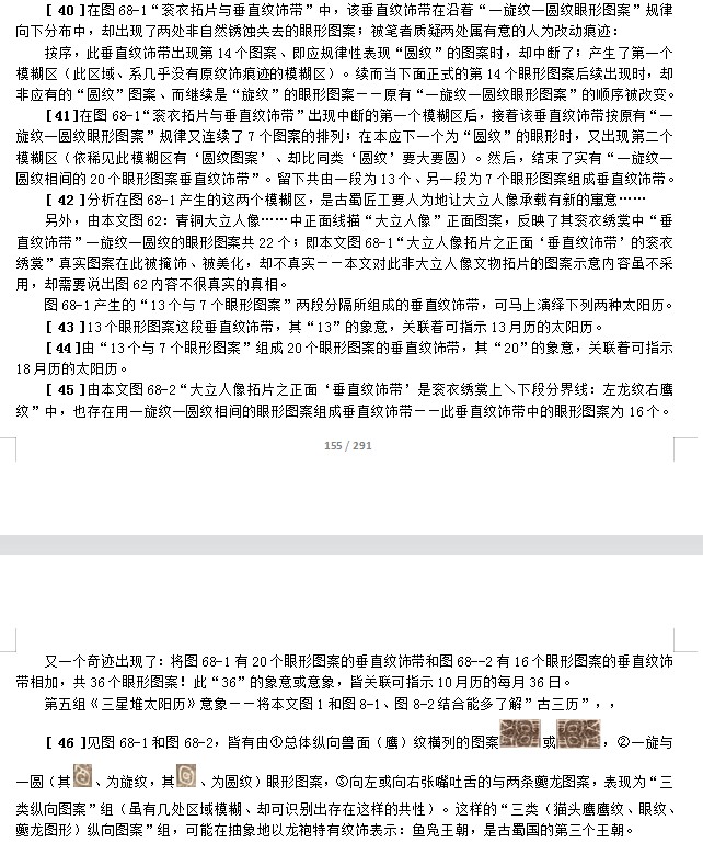 [ 96 ]青铜大立人的纹饰图案中有两组以上“0~9”完整自然数之象数图案,加上自身可谓历法大师;因而,可合称其具有“天数一体”的形象,有别具一格的恰如其分。