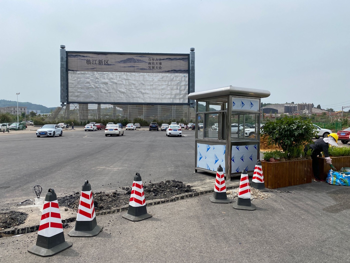 [八卦吐槽] 火车北站路面停车场要弄好了 两个亭子都摆那了 |