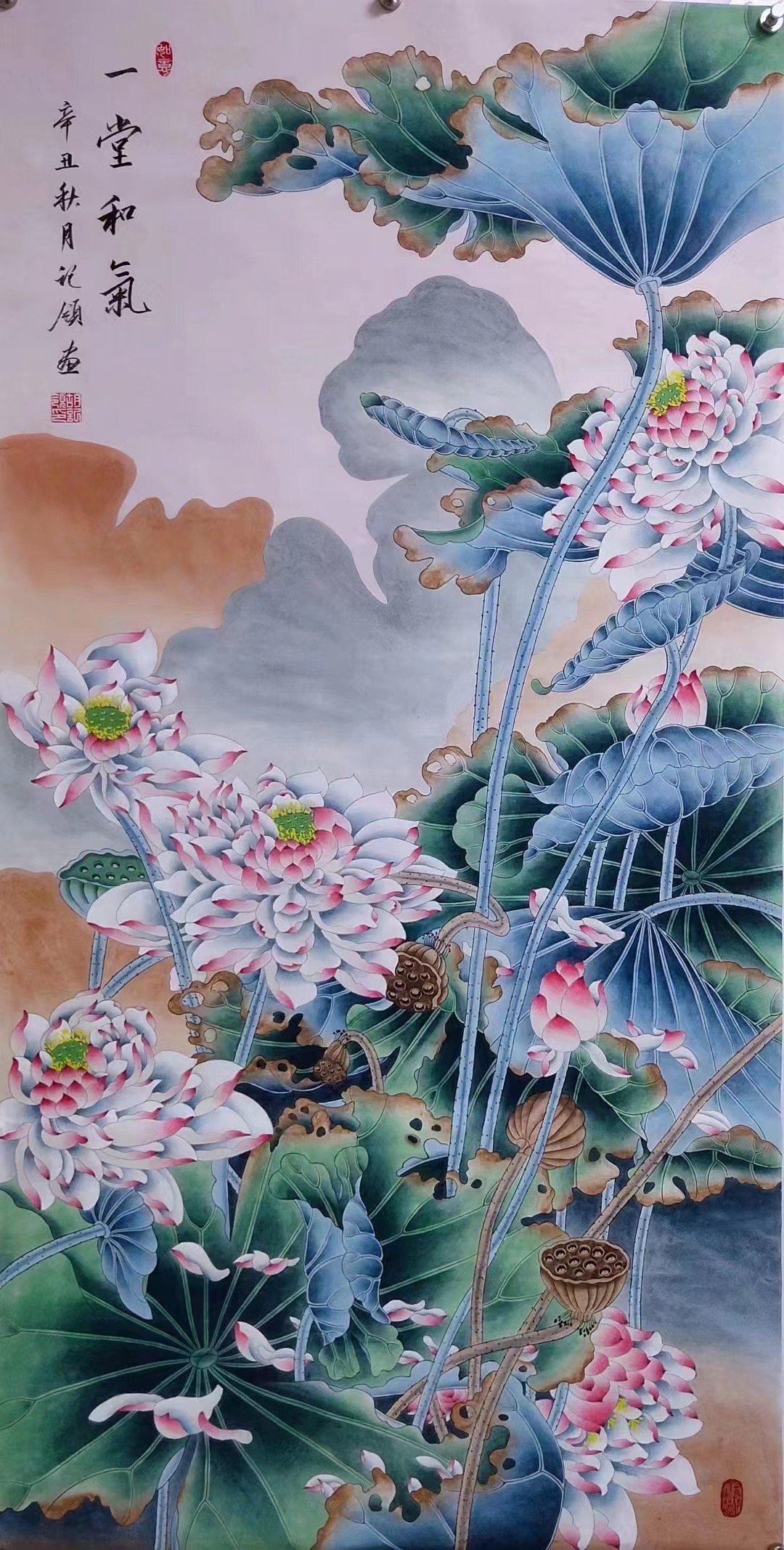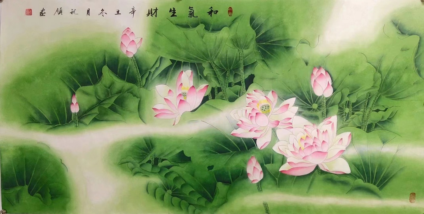 胡记领四尺荷花作品欣赏