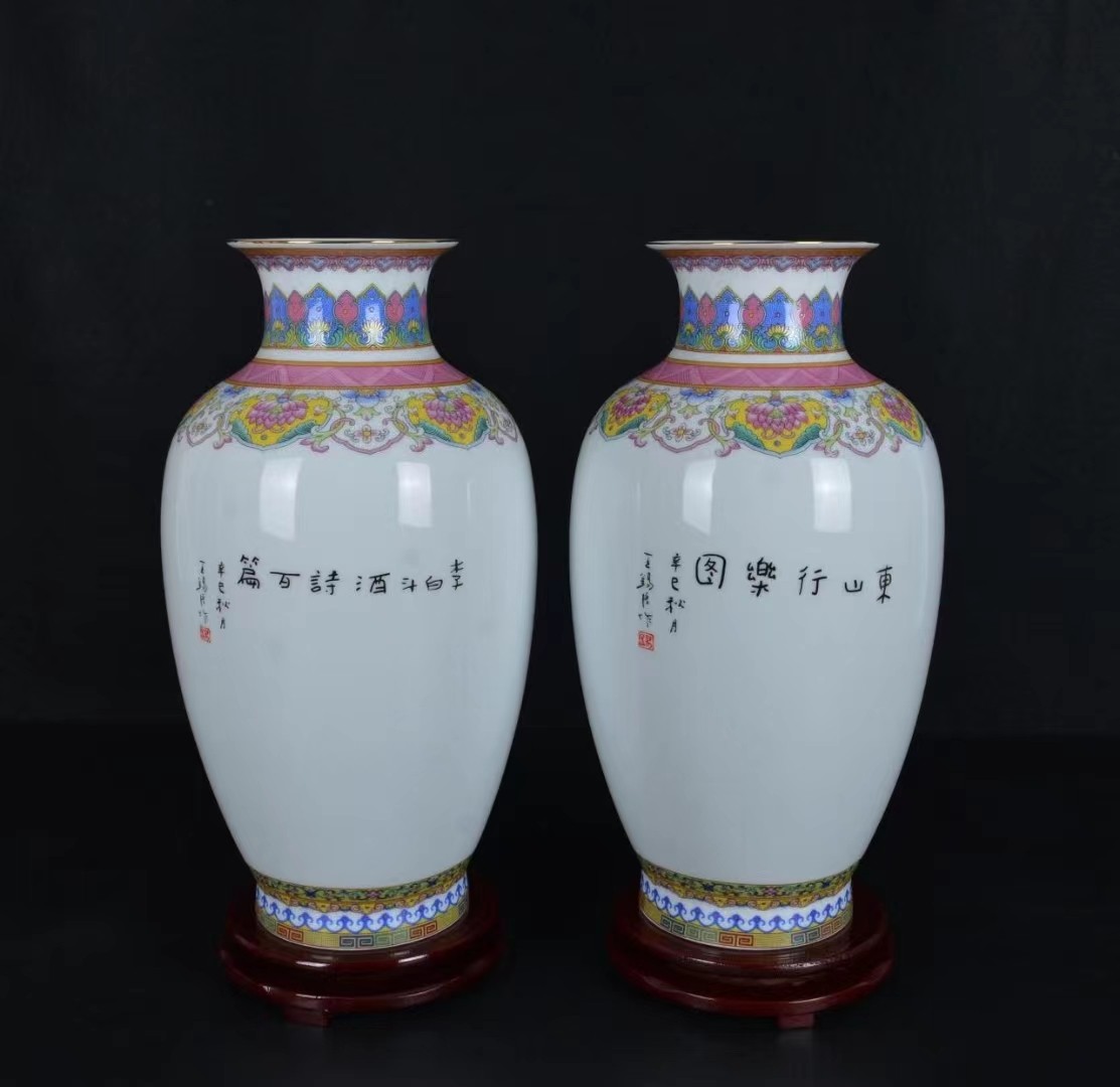 采用传统宫廷官窑御制粉彩技艺,瓶底王锡良大师签名和印鉴。