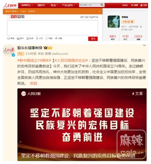 今(2023年10月1日)天,本“人民+体验官”隆重推广人民日报官方微博文化产品《人民日报国庆社论#:坚定不移朝着强国建设、民族复兴的宏伟目标奋勇前进》。