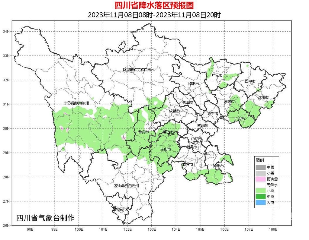 8日白天:盆地阴天间多云,其中雅安、眉山、乐山、广安4市和宜宾、泸州、南充、达州4市南部的部分地方有阵雨或小雨;甘孜州中部南部和凉山州东北部多云间阴有阵雨(雪),川西高原和攀西地区其余地方晴间多云。
