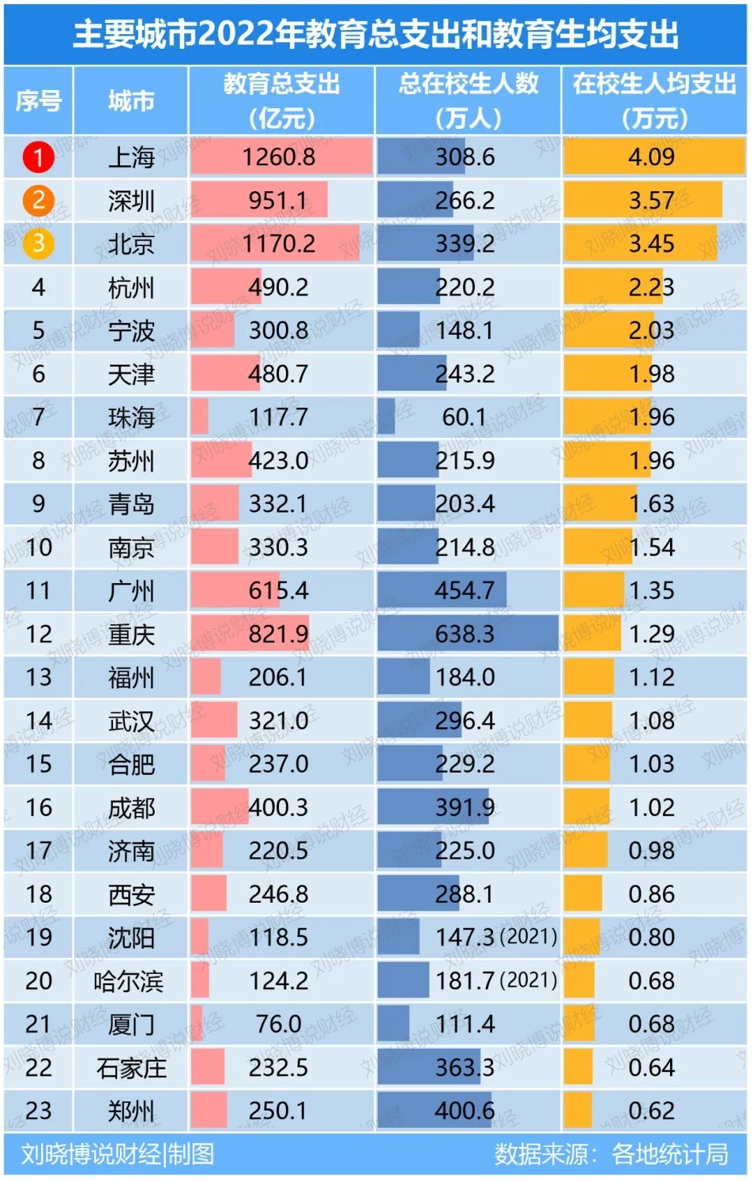 超过1/5的公共预算用在了教育上,在校生人均教育经费更是力压一众传统教育大市,足见深圳对于教育的重视程度之高。