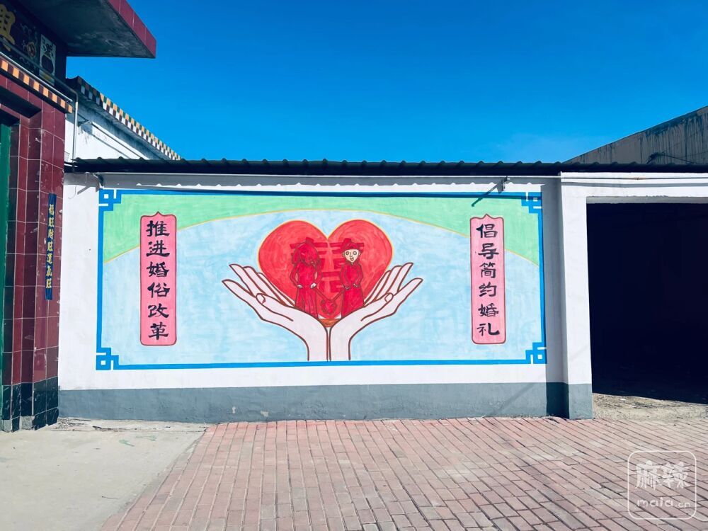 ▲河北河间市某村口墙上的“零彩礼”宣传画图据新京报