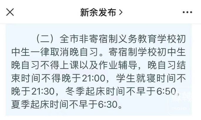 2月22日,江西省新余市教育局发布通知称,2024年春季学期起,全市非寄宿制义务教育学校初中生一律取消晚自习。