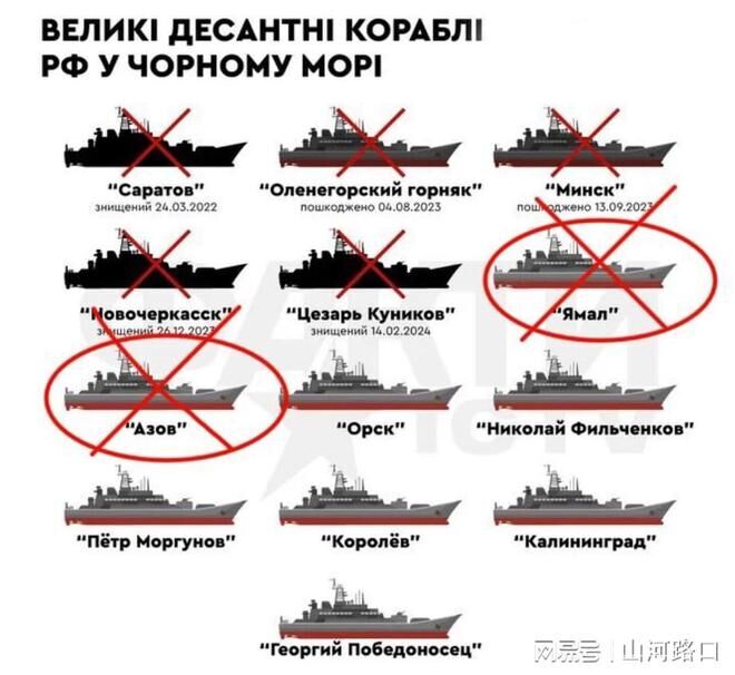 最要命的是俄黑海舰队的2艘大型登陆舰又被击中并摧毁,黑海舰队损失太大了。