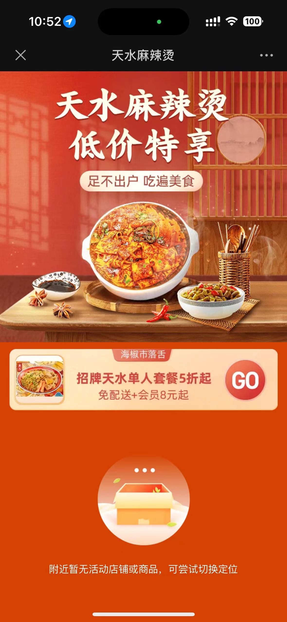 4月29日起,饿了么在成都推出“低价特享天水麻辣烫”优惠福利,定位在成都的消费者,可上饿了么搜索“寻味麻辣烫”进入活动主题页,享受“招牌天水单人套餐五折起”、“19.9元起享受天水地道美味”等活动。