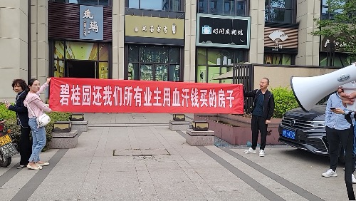 引起大多数要求拿出收房证件的业主诸多不满,在售楼部拉横幅进行维权,项目负责人未露面解决此事…