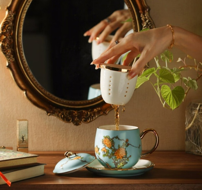 [鉴赏] 夫人瓷西湖蓝茶具套装 陶瓷茶杯四件套 |