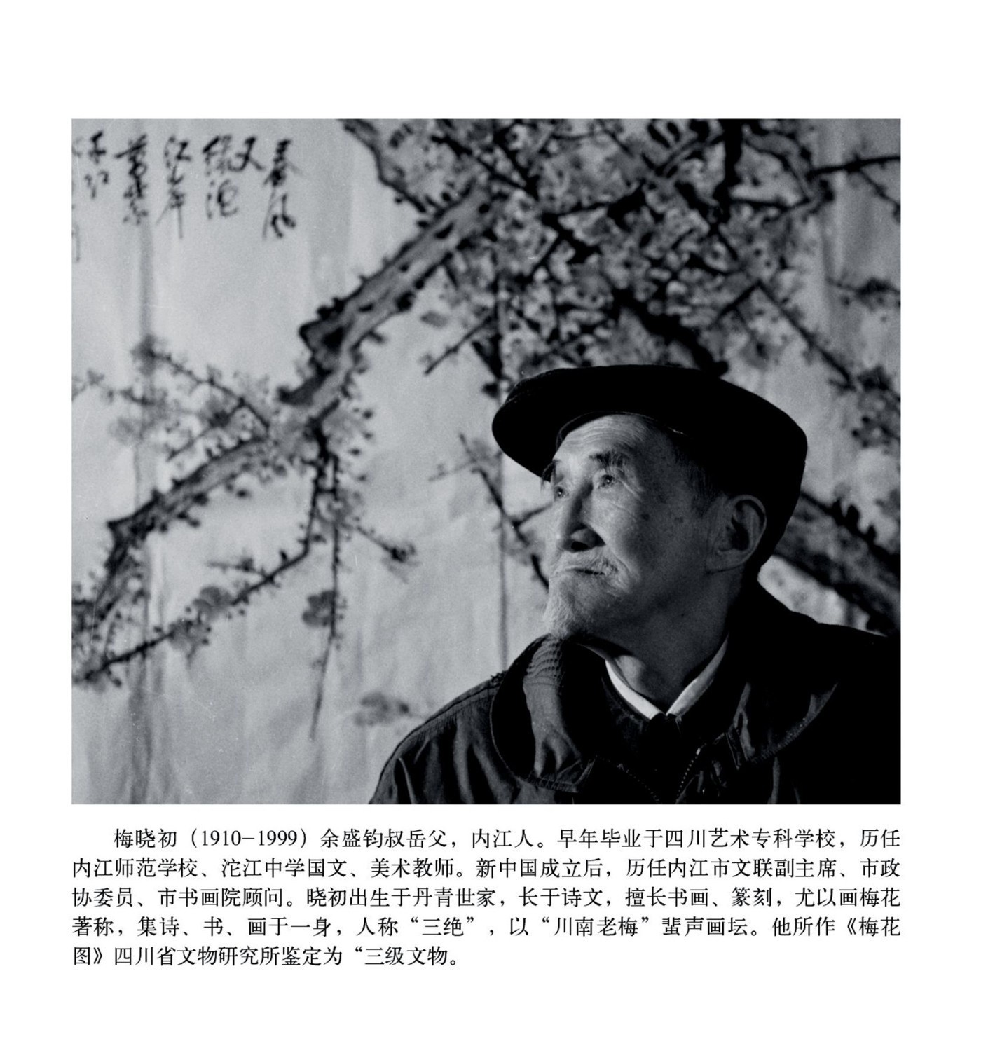 梅晓初(1910年一1999年),解放前后长期从事教育工作,家居内江城内。虽未远离过故土,却与许多文学、艺术名家有交往,内江各界人士知道他的更多。他在诗、书、画方面造诣很高,备受人尊重,晚年被人称为“老梅三绝”,有幅由东兴区文化局收藏的《梅花图》被省文物研究所鉴定为“三级文物”。其余作品流传至香港、台湾、新加坡、南斯拉夫、日本、美国等地,并由杭州文渊图书馆收藏。对他的艺术成就和人品,去年内江师院马兴国先生在《内江广播电视报》上,发表了一篇《汉安人物'缅怀梅晓初先生》作了详细评介,纪念其逝世一周年。此外,师院姚诚副教授写了一首律诗《悼梅翁晓初》:“连宵江上飞秋雨,此日园中折老梅。画苑奇葩摧蜀秀,沱风佳句惜诗才。寒斋故旧伤今夕,芸阁丹青蕴异瑰。莫道人间珍寸墨,行空天马岂凡胎。”这更是知交好友对他艺术成就最真挚的评介,而不是溢美之词。