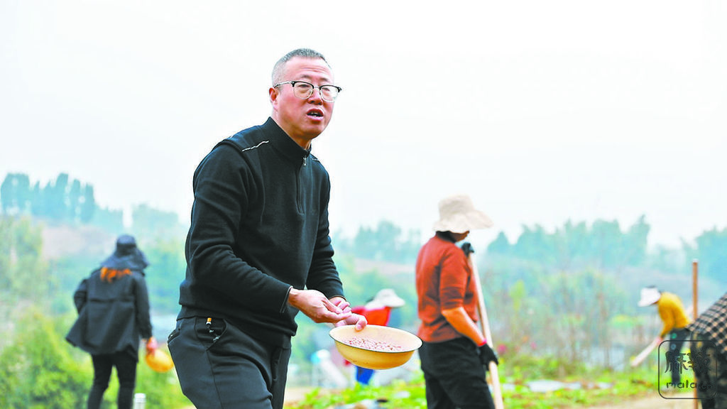 2月28日,记者见到游勇时,他正在威远县镇西镇粮经复合种植产业带的春耕现场与村民们聊天。田间地头,一派繁忙景象,村民们忙着翻耕、管护、播种、覆膜等春季农事。