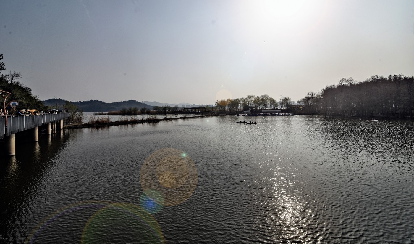 杭州之我色371-青山湖国家水上森林公园2 杭州青山湖国家水上森林公园很大,绕胡有四十多公路,我娃娃骑行了一圈,锻炼得车都下不了,中间还加了钢的。这是“走上层路线”,免费随便耍。要想更贴近水上森林公园,就得下沉“基层”了,几乎“脚踏湿地”,能清楚水杉树的根基,真是“到底”有好处,票也不贵,才40元;舍不得钱,又想高高在上,也行,可以看局部,只是没有那么亲近大地母亲对森林的乳育。这里就这么特别,上头没有下头好,到下头不“行贿”不行,除非是内部的。 在夏秋雨季,湖水将全部漫灌森林公园树木的根部,润其心田,森林趁机枝繁叶茂,水面也一片绿藻,共酿蔚为壮观。谁怕错过,可以在那里等,办法总是有的。