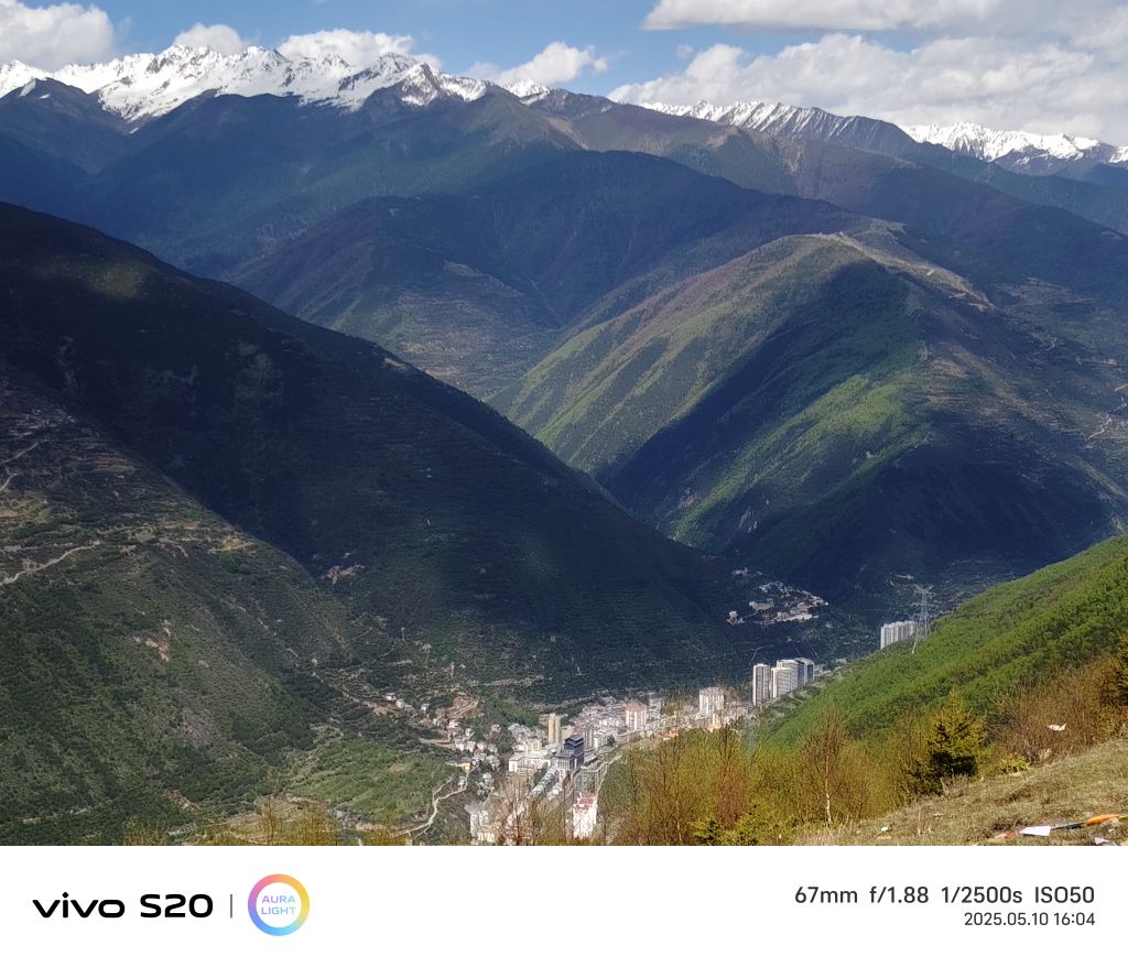 五月的马尔康,已经披上绿装。上到昌列寺所在的山顶,远眺四周,近处的山坡绿树成荫,遥远的群山白雪皑皑。