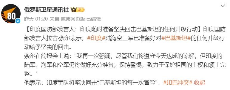 同时印度陆军发射多枚导弹和无人机,袭击巴首都伊斯兰堡附近的努尔·汗空军基地。